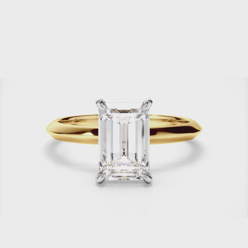 Custom made signature emerald cut diamond solitaire engagement ring with knife edge band, available in platinum, 9ct or 18ct yellow, white or rose gold. Featured here with a 2.00ct diamond centre stone, this style can be made in any centre stone size and quality desired. Click enquire now to receive further details and information on this style or book an appointment with us today, and enjoy a complimentary personalised discussion with our diamond experts, and design your dream ring within your budget.