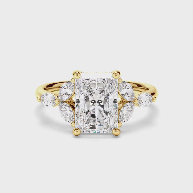Radiant Cut Diamond Engagement Ring with Cluster Shoulders