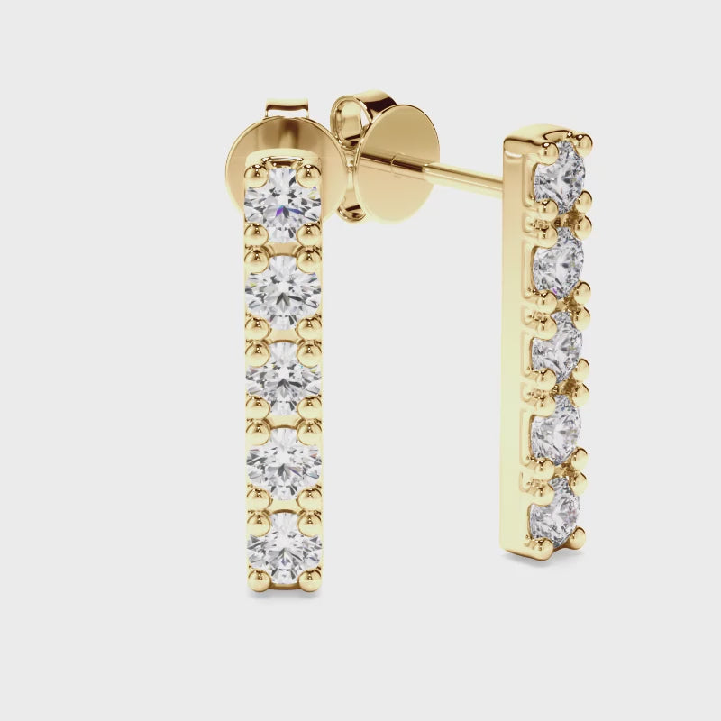 5-Stone Round Brilliant Cut Diamond Bar Earrings