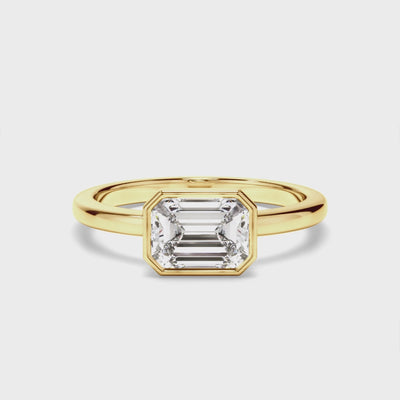 Emerald Cut Diamond Bezel East West Solitaire Engagement Ring