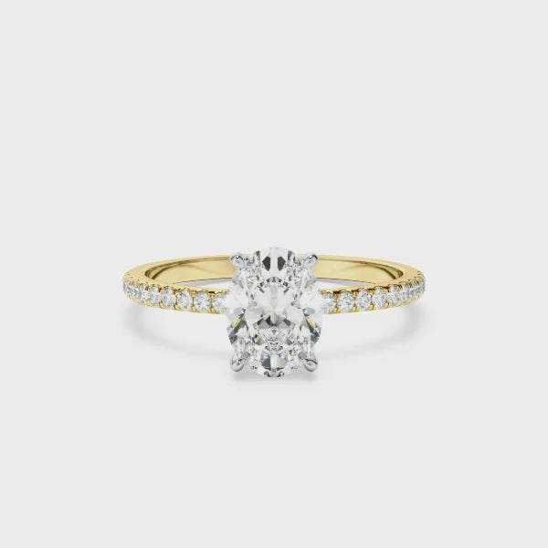 Oval Cut Diamond Solitaire Engagement Ring With Pave Band