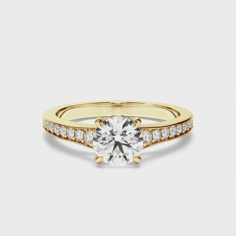 Round Brilliant Cut Diamond Engagement Ring with Diamond Sides