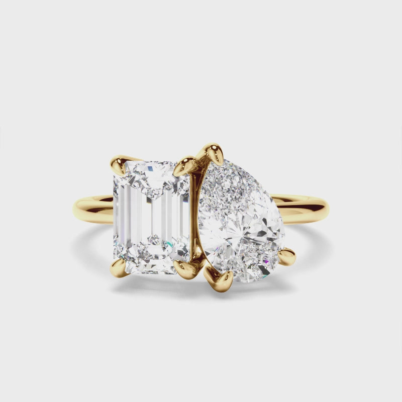 Emerald & Pear Cut Diamond Toi et Moi Engagement Ring
